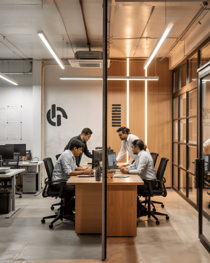 An empty commercial space transformed into a high-functioning, modern workspace in Dwarka Expressway.