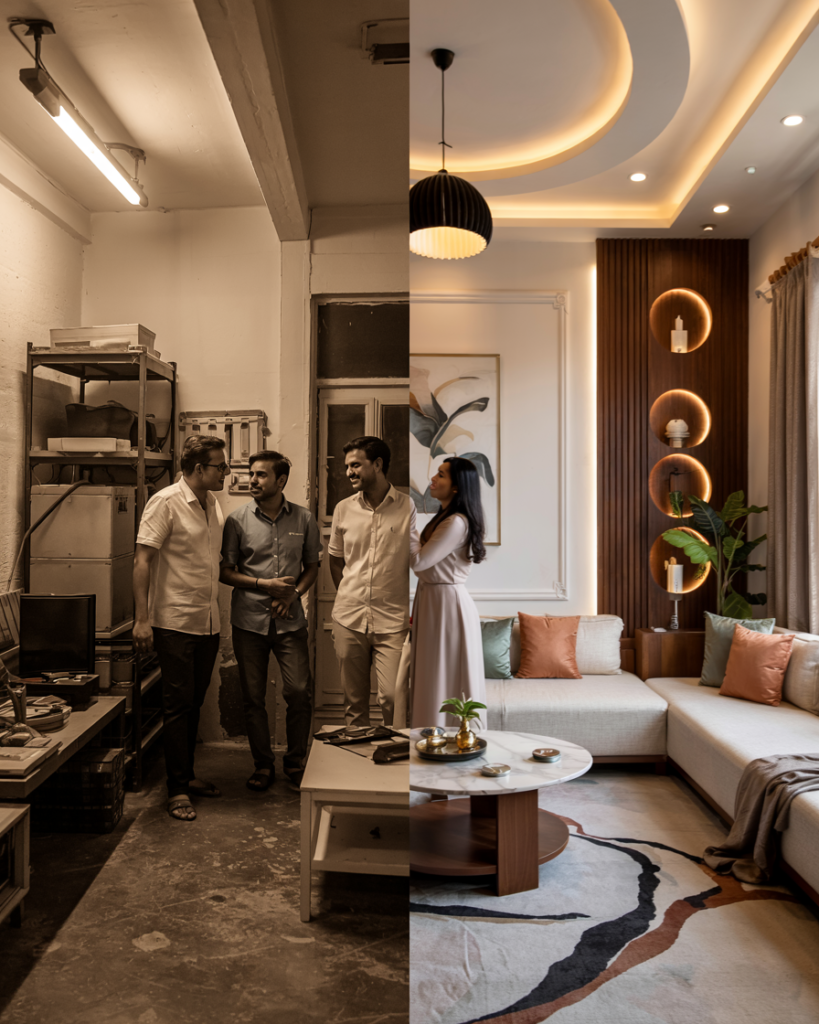 We turned a plain 3BHK into a modern luxury home with smart design and custom interiors.