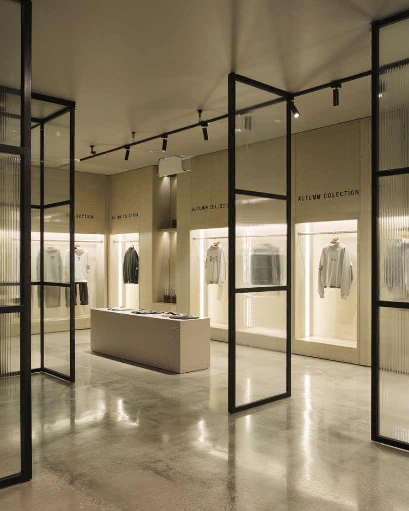 “I needed to zone my display areas without compromising visibility. They used frosted glass partitions framed in black — it added elegance and depth while keeping everything visually open.”