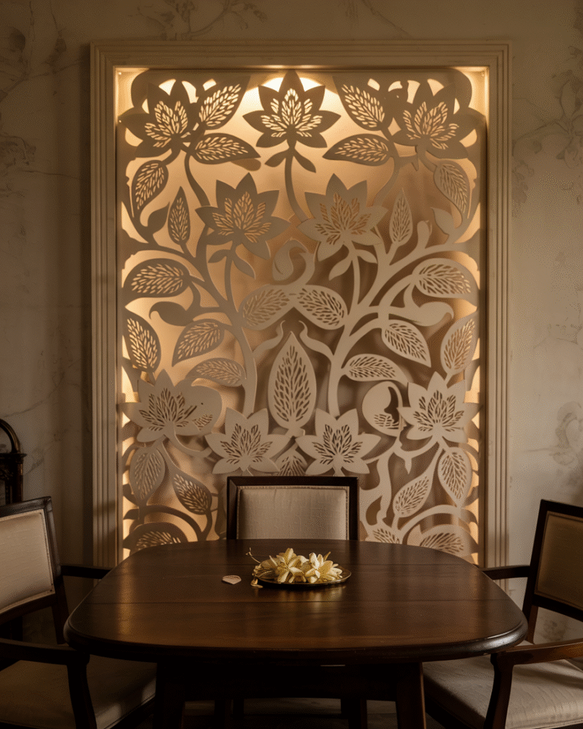 “I wanted to upgrade our dining space without renovating everything. They added a custom backlit panel in MDF with floral cut-outs — it changed the entire mood of the room.”